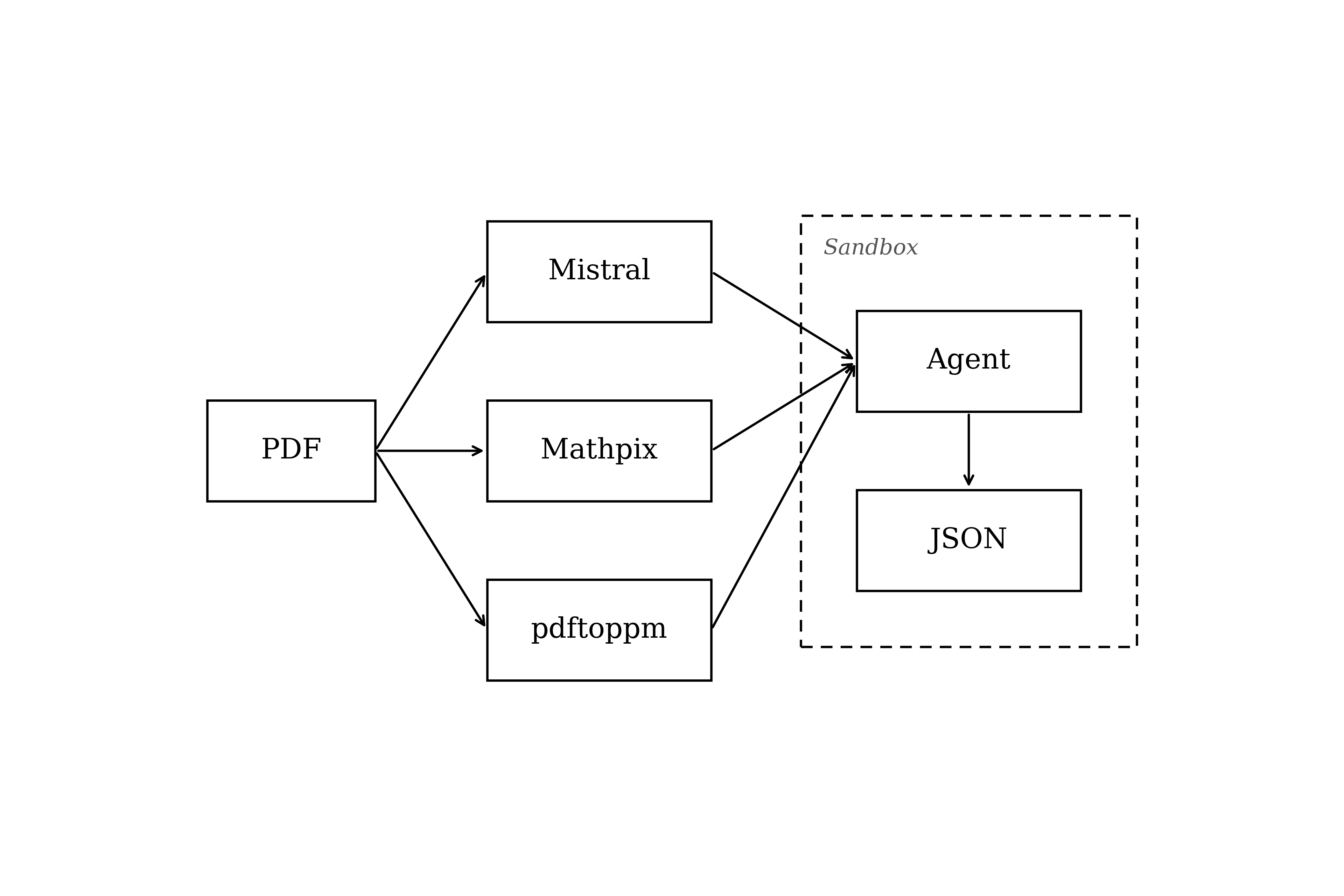 With these three parsed versions in hand, we can now orchestrate agents to do the inference of data from the PDF source file. We leverage a visual and text-based LLM model inside a sandbox running in the cloud to do this work, using the two current best tools for the job: